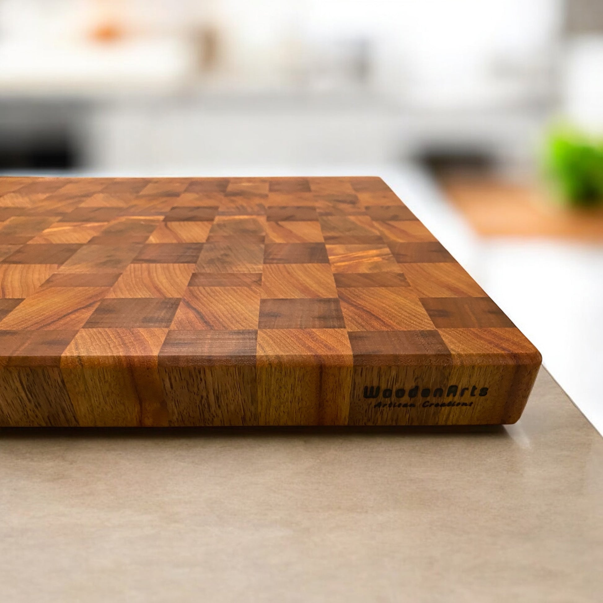 Crafted from a striking combination of Camphor Laurel and Blackwood, this end grain chopping board is as functional as it is beautiful. The end grain construction not only highlights a mosaic of rich chocolate and golden tones, but also offers superior durability and knife-friendliness — making it a favourite among chefs and home cooks alike.